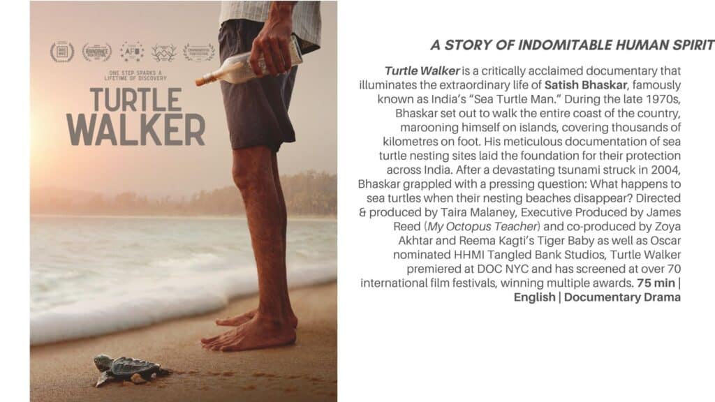 This remarkable film tells the inspiring story of Satish Bhaskar, a dedicated conservationist who spent years protecting sea turtles along India’s coastline. His work shows how one person’s determination can make a huge difference in saving endangered species.
